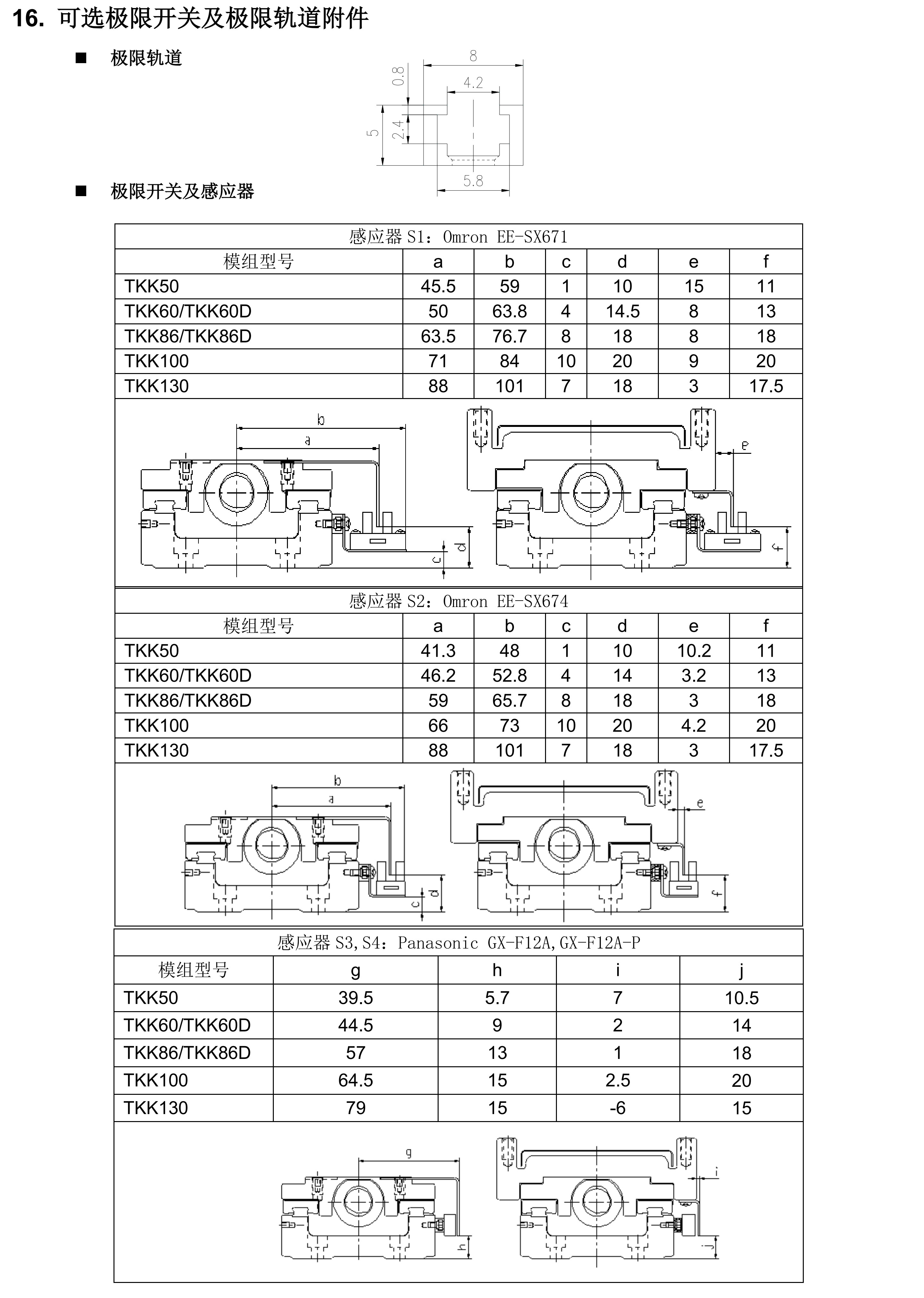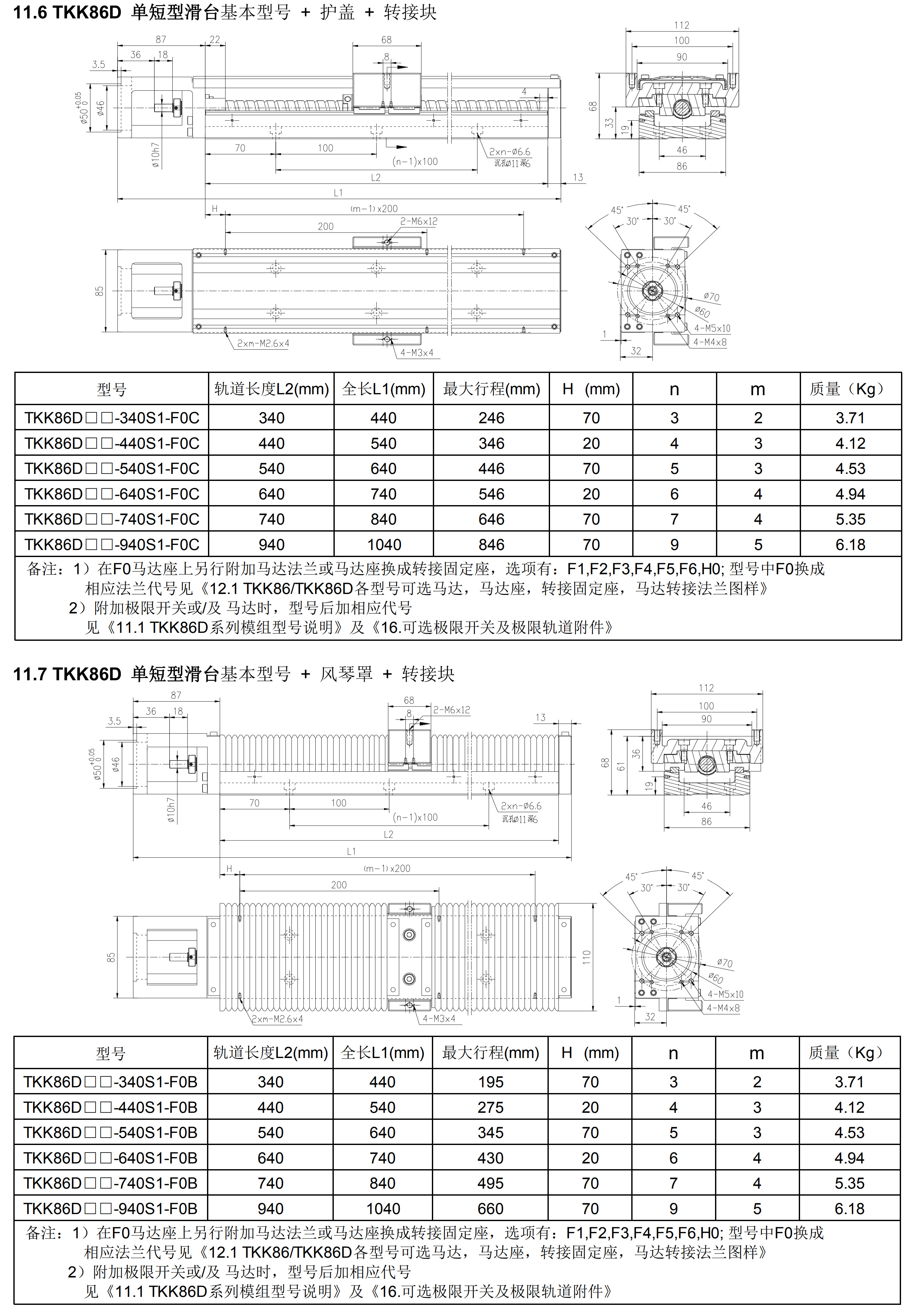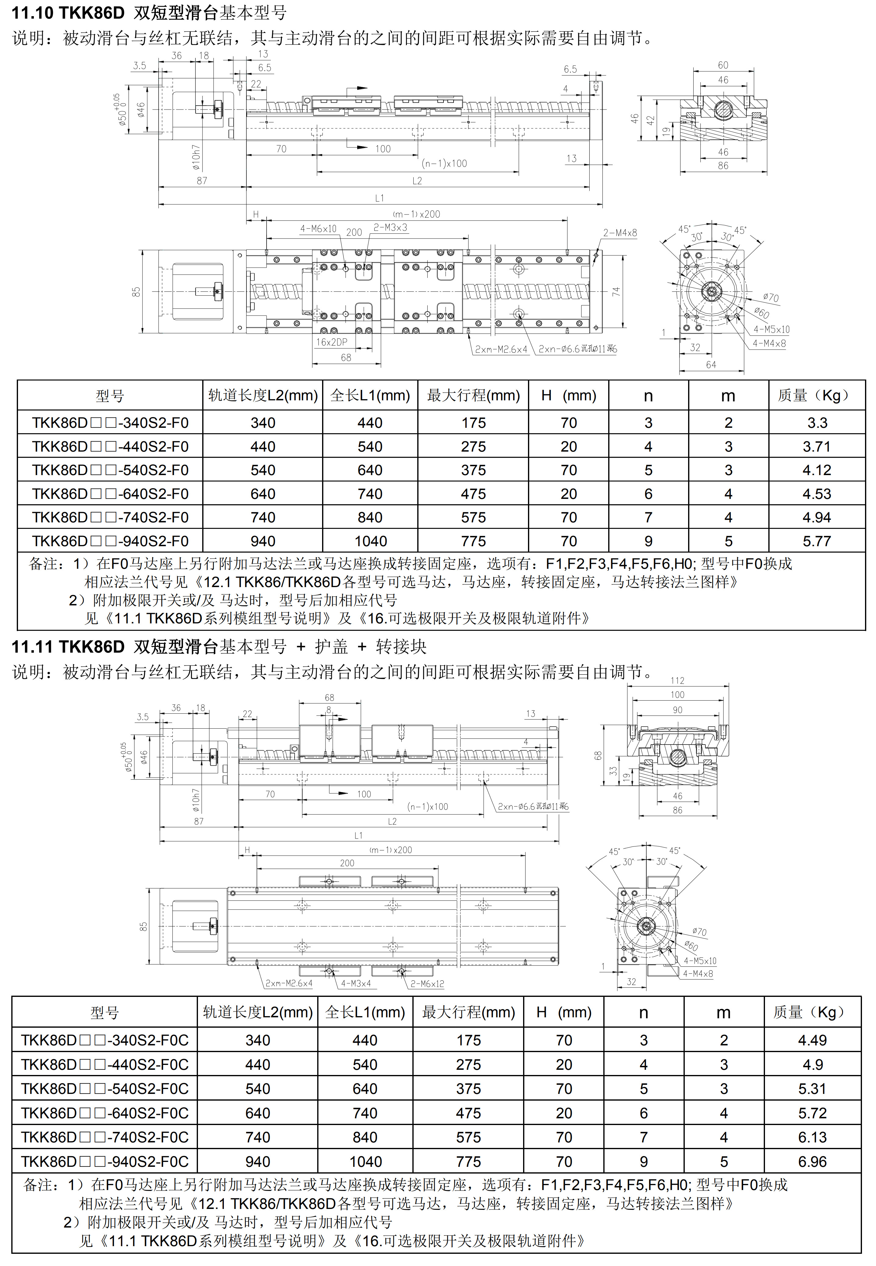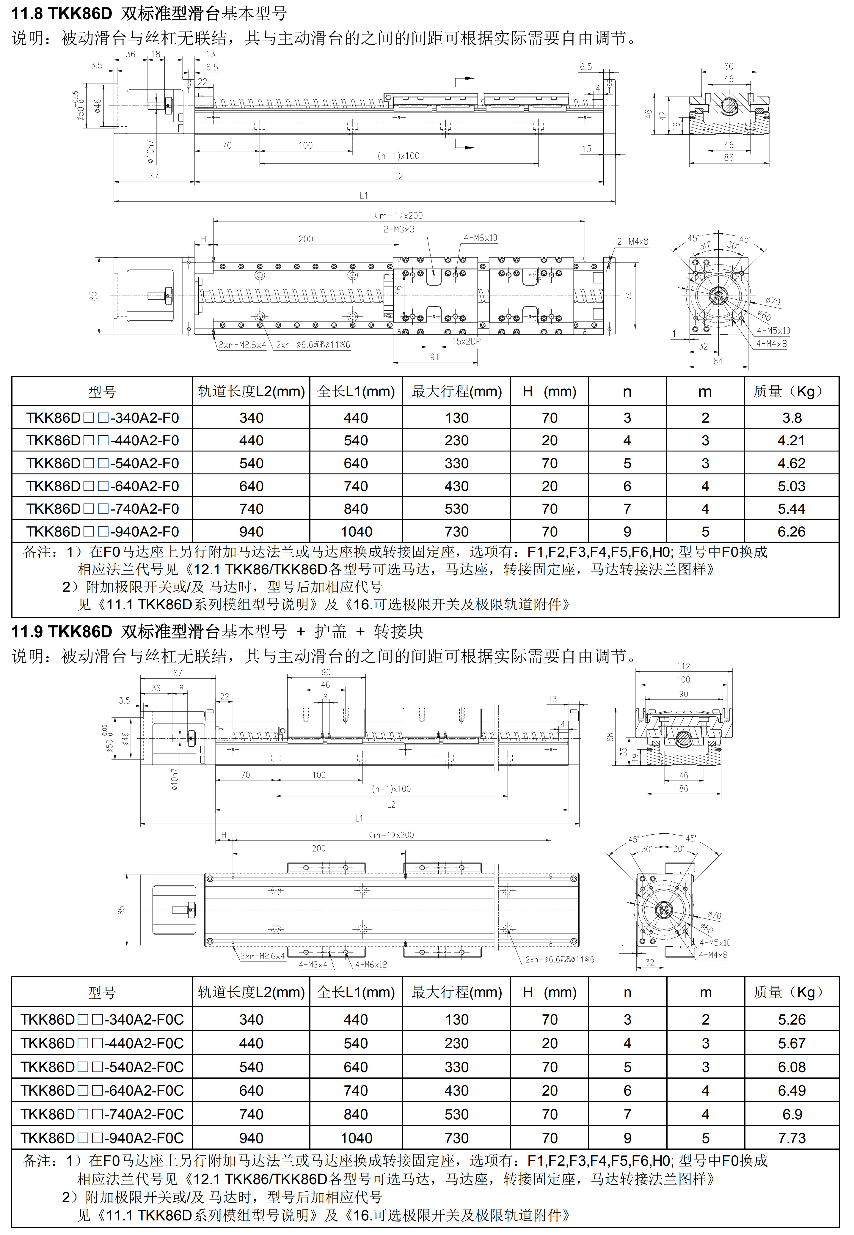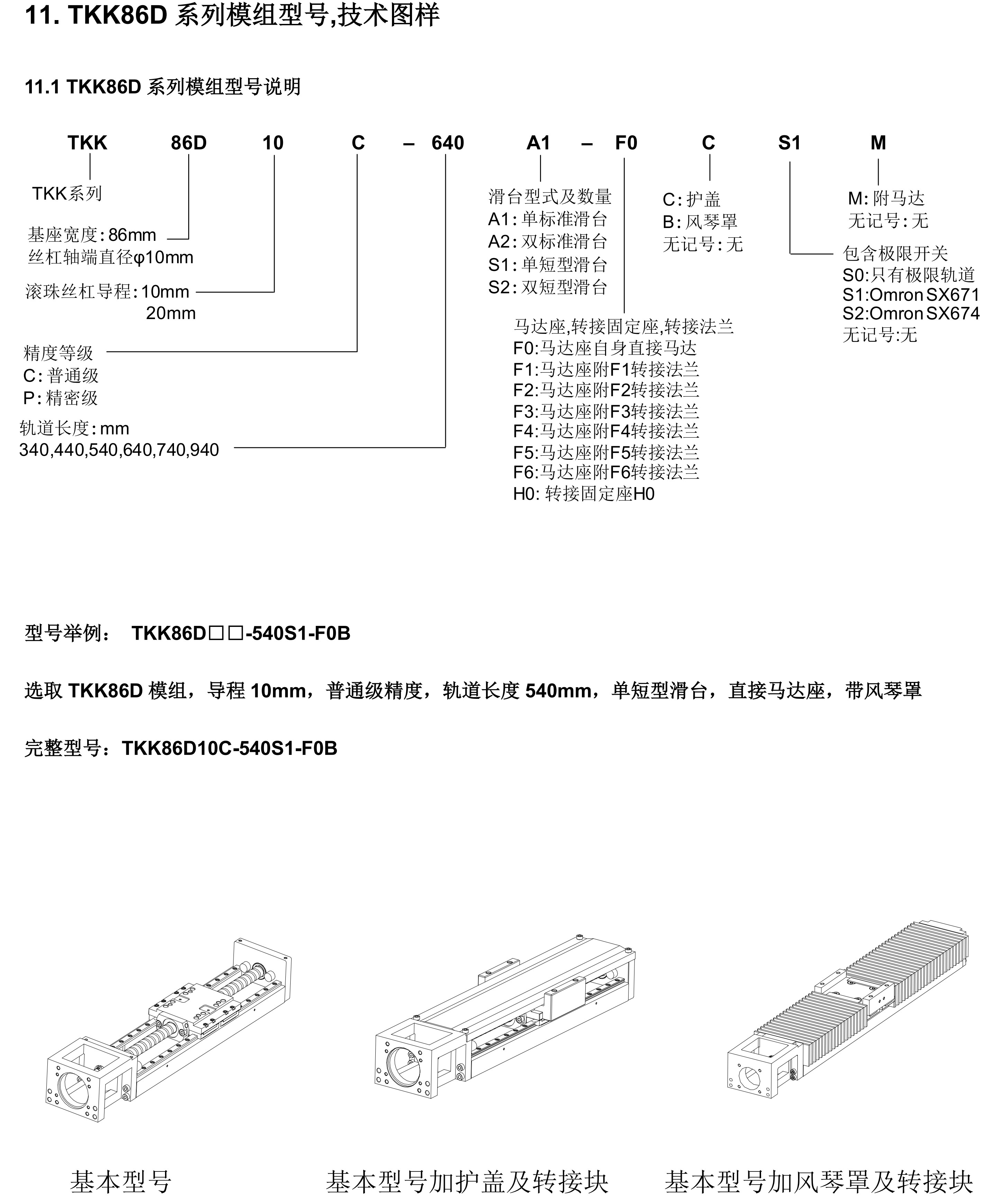 TKK系列線性模組為鋁制基座,寬度范圍40mm到130mm,可完全替代臺(tái)灣上銀KK系列,PMI之KM系列,日本THK之KR/SKR等線性模,整體重量更輕。TKK86D系列軌道長(zhǎng)度:340、440、540、640、740、940。