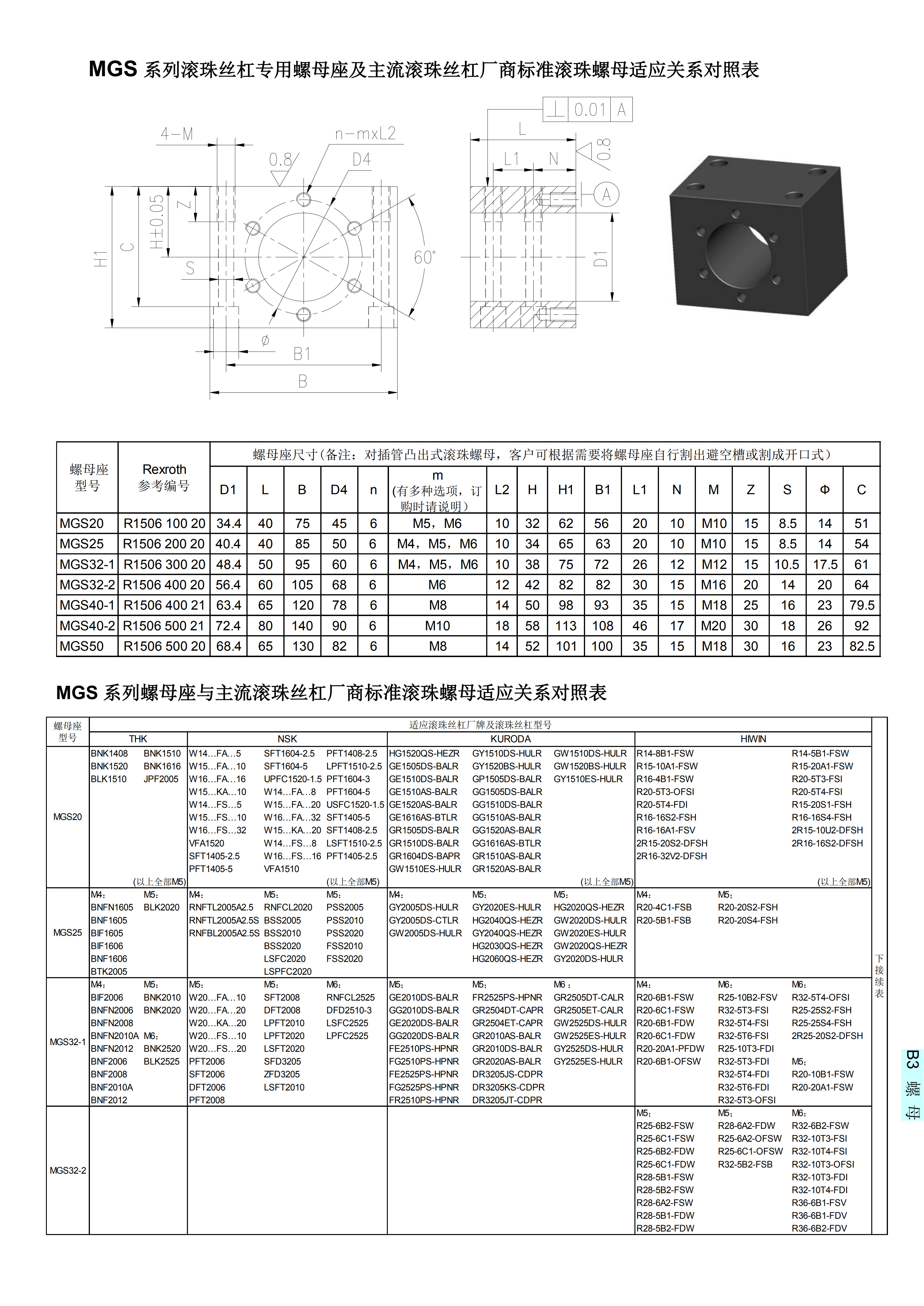 MGS系列滾珠絲杠專(zhuān)用螺母座