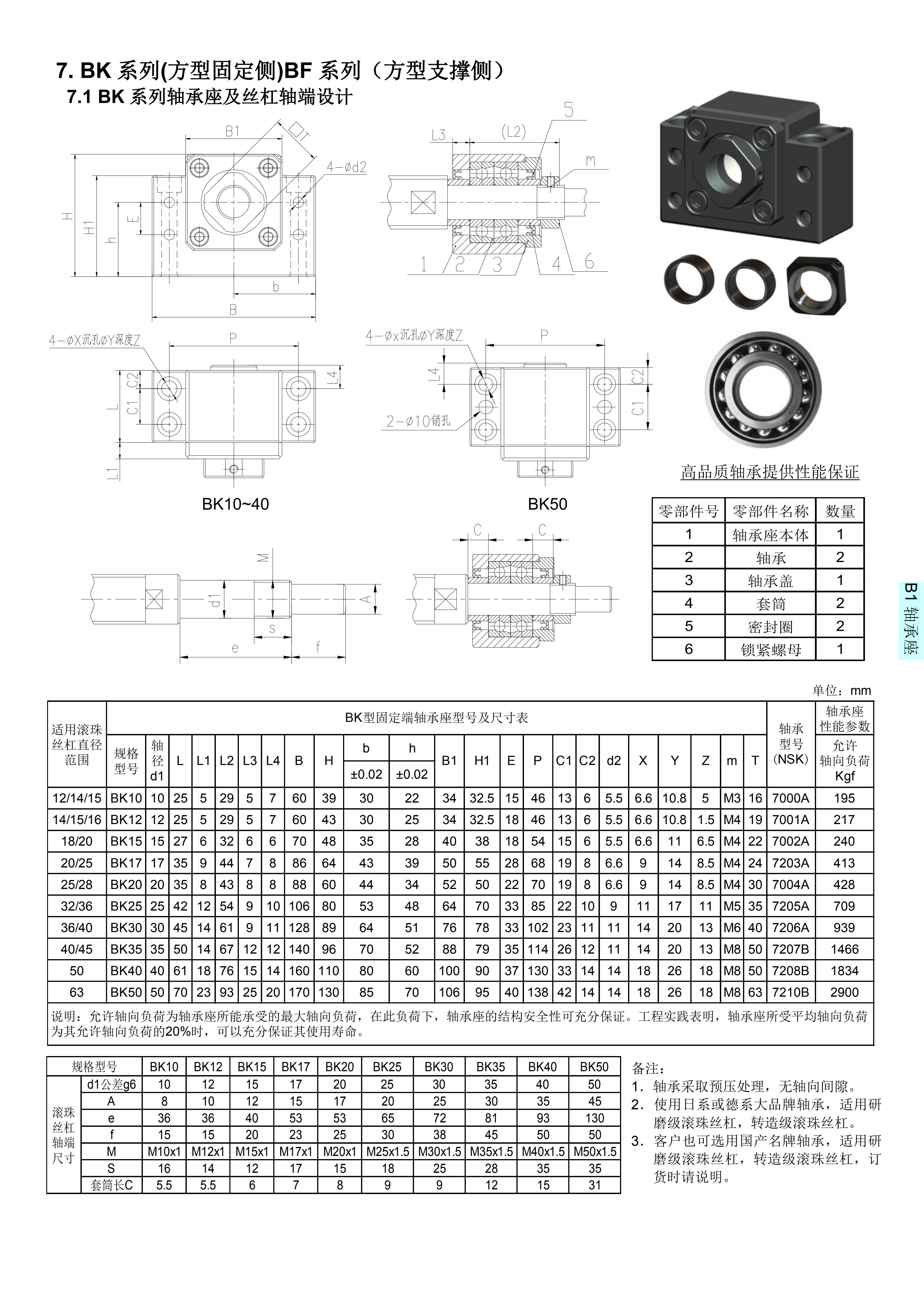 公司專業(yè)研發(fā)和生產(chǎn)世界著名廠商全型號(hào)滾珠絲杠專用精密軸承座,并在國(guó)際通用型號(hào)基礎(chǔ)上,首創(chuàng)了TAC系列重載精密滾珠絲杠專用軸承座。各產(chǎn)品型號(hào)與臺(tái)灣嵩陽(yáng)SYK,日本THK,日本NSK,MISUMI,德國(guó)Rexroth相應(yīng)型號(hào)通用。BK系列具體型號(hào):BK10、BK12、BK15、BK17、BK20、BK25、BK30、BK35、BK40、BK50。