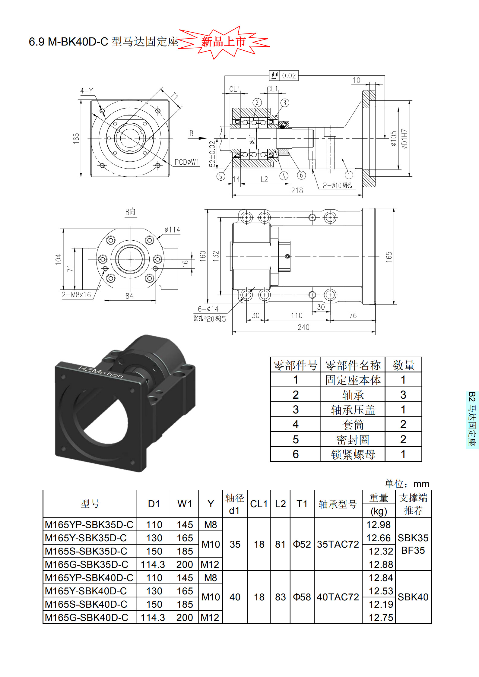 公司研發(fā)和生產(chǎn)的馬達(dá)固定座,馬達(dá)端可適應(yīng)松下,三菱,臺達(dá),東方等著名廠商的伺服馬達(dá)/步進馬達(dá),軸承座一端適用國際標(biāo)準(zhǔn)化軸承座,從而,馬達(dá)安裝與滾珠絲杠可保證同心,提高安裝效率與安裝質(zhì)量。A型,B型,C型,H型,L型與臺灣嵩陽SYK相應(yīng)型號通用;KK型等同臺灣上銀KK系列,PMI之KM系列,日本THK之KR/SKR等線性模的固定端。M-BK40D-C型馬達(dá)座具體型號:M165YP-SBK35D-C、M165Y-SBK35D-C 、M165S-SBK35D-C、M165G-SBK35D-C、M165YP-SBK40D-C、M165Y-SBK40D-C、M165S-SBK40D-C、M165G-SBK40D-C。