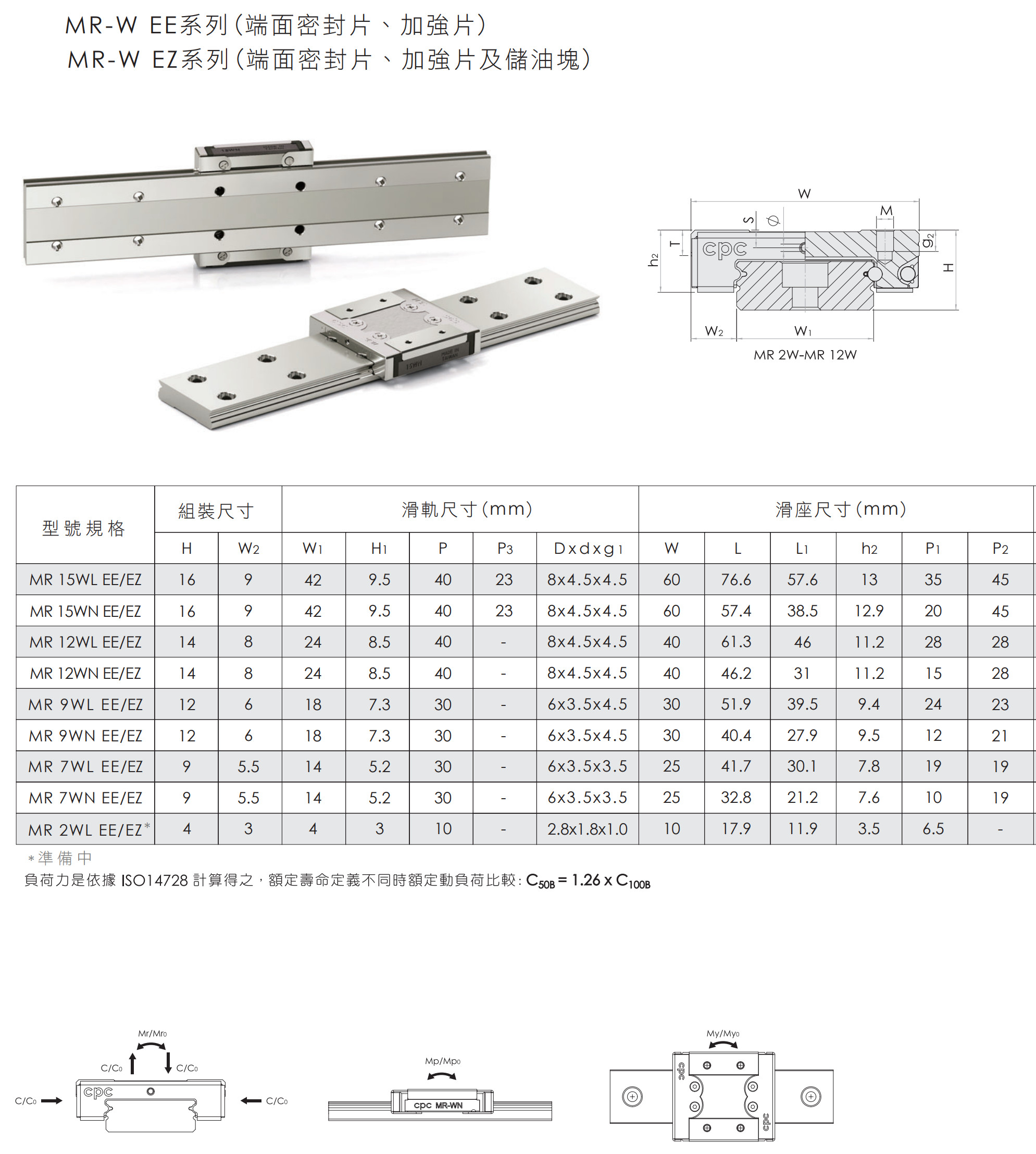 2.用二列式滾珠循環(huán)設計,滾珠軌道采用哥德式結構,其接觸角為45度,以達到四方向等負荷之效果,并在有限空間限制下,采用較大尺寸鋼珠以及更大軌道輪廓接觸面積設計,以提高負荷能力,展現(xiàn)高負荷,高扭矩功能。