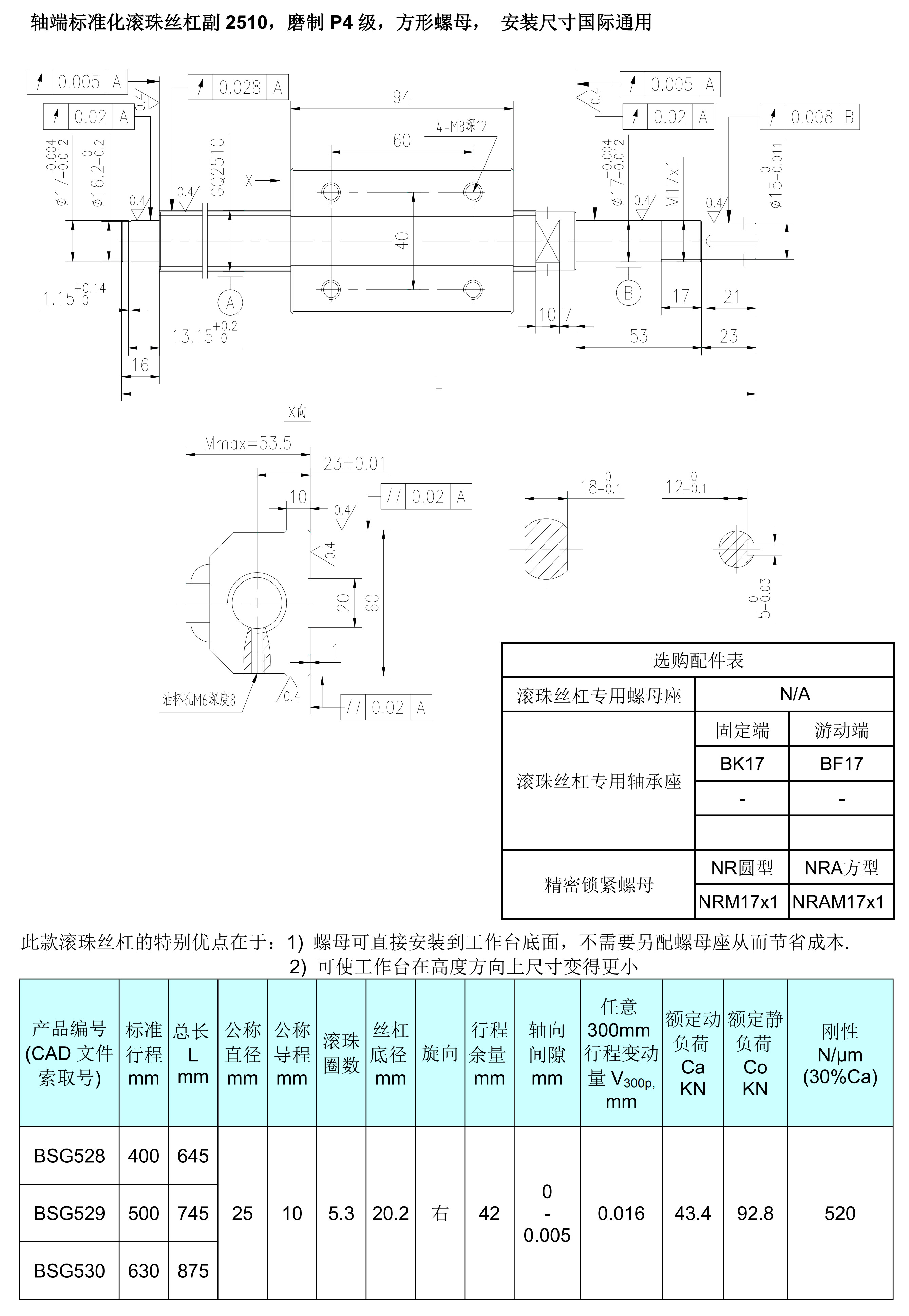 2510方形螺母,軸端標(biāo)準(zhǔn)化磨制P4級(jí)滾珠絲杠副2D圖檔